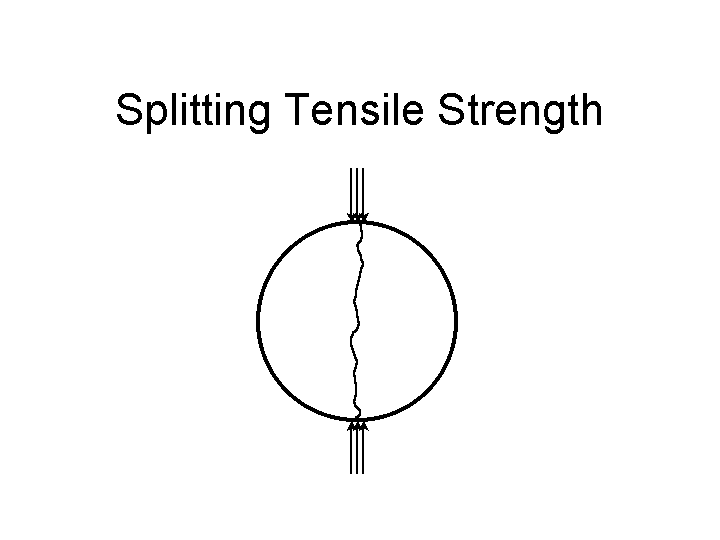 Splitting tensile tests involve compressing a cylinder or core on its side until a crack forms down the middle, causing failure of the specimen.